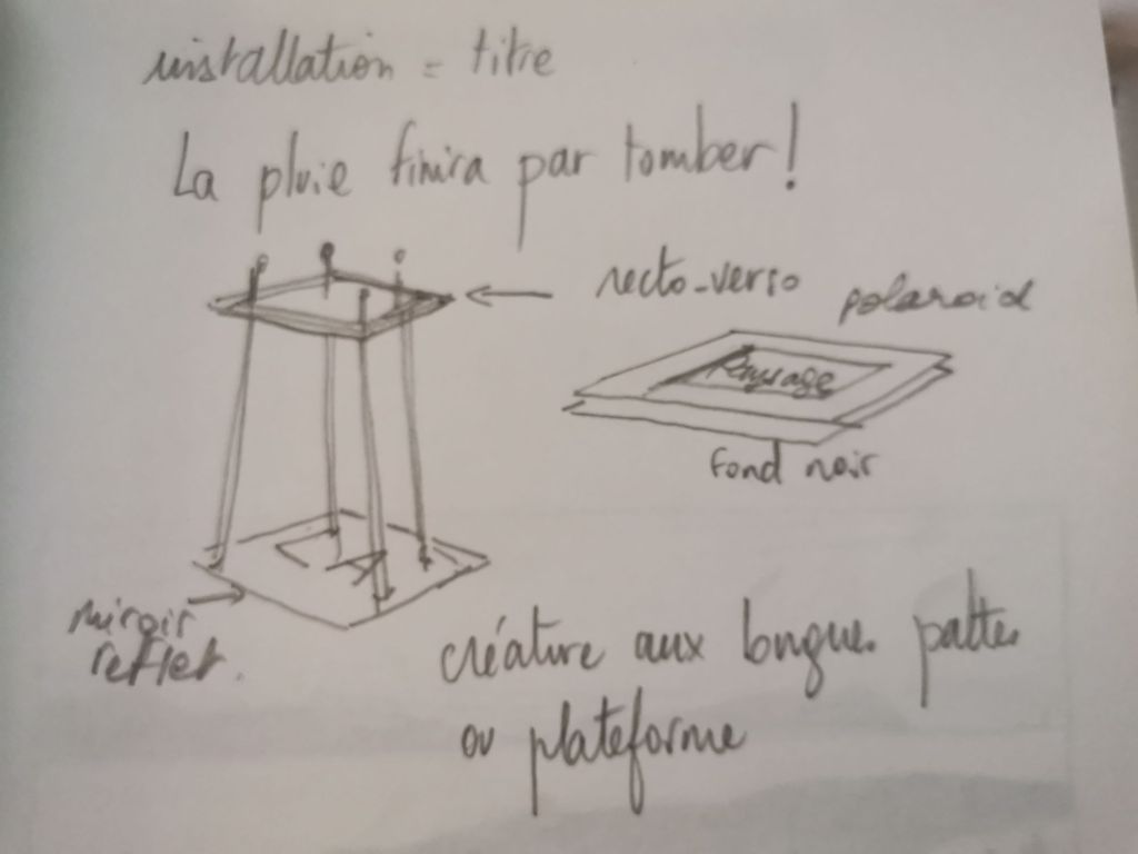 Pendant cette période, j’ai filtré mes promenades à travers ce récit et collecté du matériau pour le rendre visible. (croquis, photos, textes…)