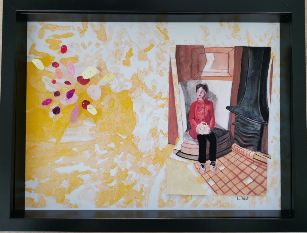 Mélanie 30 x 40 x 4cm, gouache, crayons aquarelle les, sérigraphie, épingles, carton plume, 90 euros